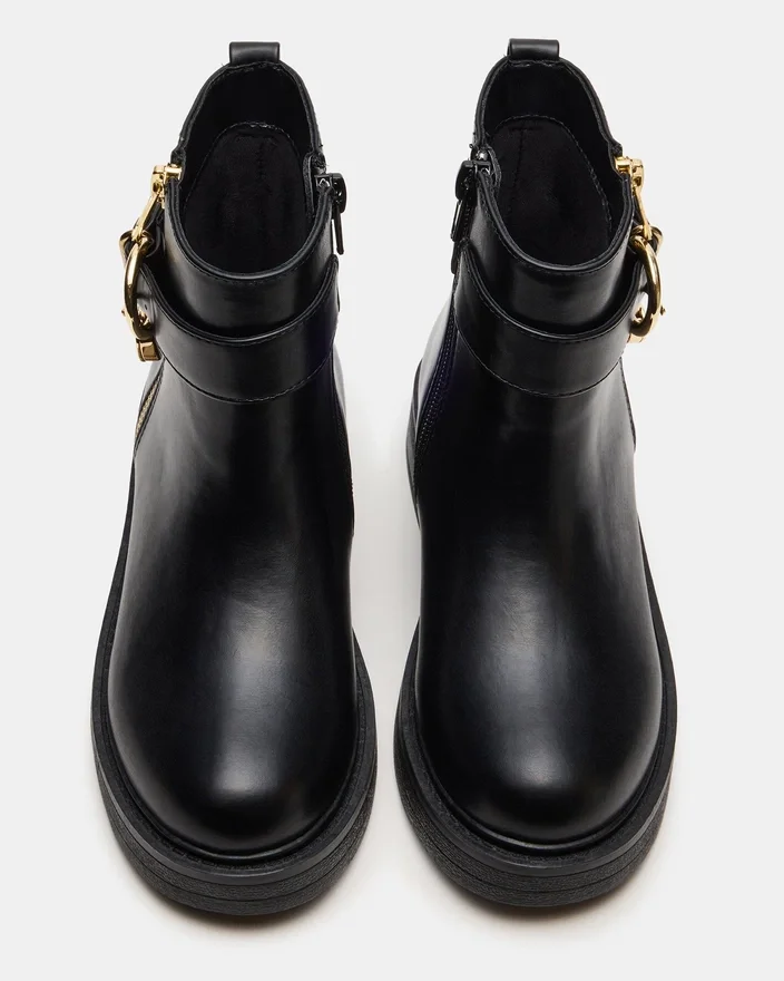 These Kids’ Locket Black Ankle Boots Combine the Classic Chelsea Boot Silhouette with a Durable Lug Sole for Enhanced Traction and Stability. Designed for Active Kids, the Slip-On Bootie Style Ensures Easy Wear While Providing Ankle Support and All-Day Comfort. Crafted with Quality Materials, They Are Perfect for Everyday Adventures, Blending Style and Function Seamlessly.
