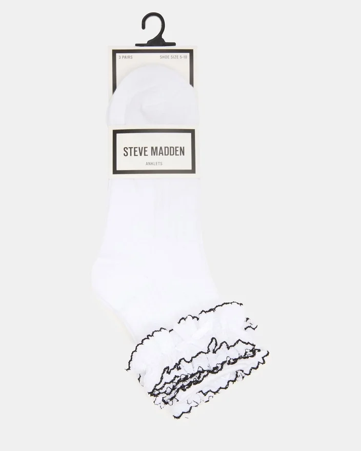 Elevate Your Sock Drawer with This Versatile 2 Pack Ava Ruffle Socks White. Each Pair Features Charming Double Ruffles and Crisp White Fabric Accented with Black Trim for a Polished, Fashion-Forward Look. The Ruffled Design Adds Texture and Personality to Any Outfit, While the Classic Color Combination Ensures Easy Coordination with Your Existing Wardrobe. Perfect for Layering with Sneakers or Showcasing with Loafers, These Socks Deliver Both Style and Comfort for Everyday Wear.