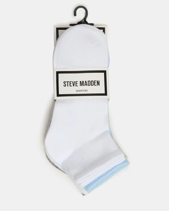 6 Pack Peyton Ribbed Quarter Socks White Multi