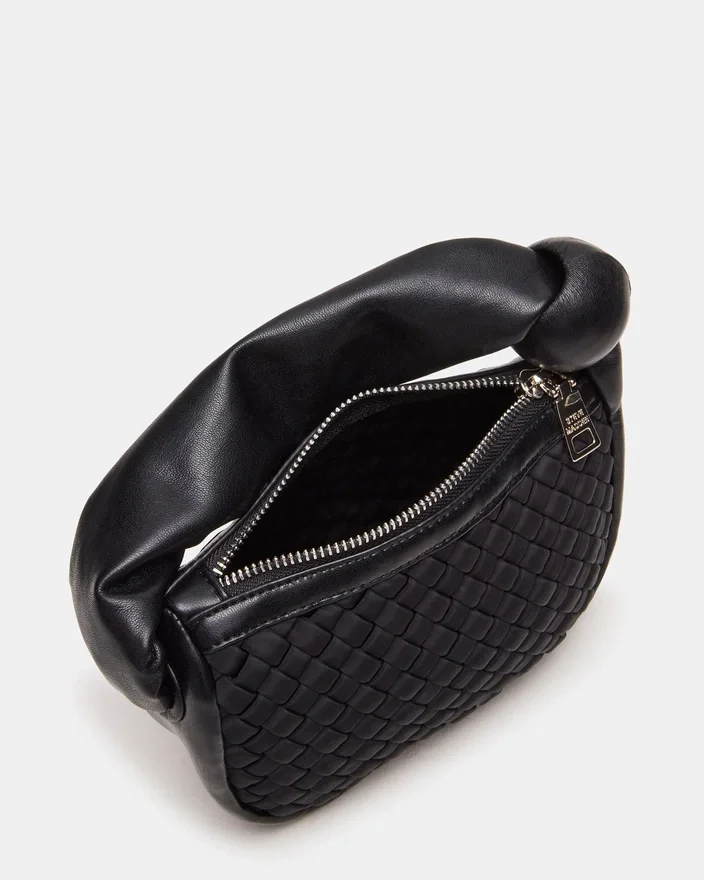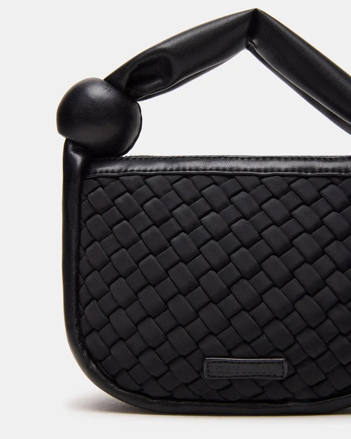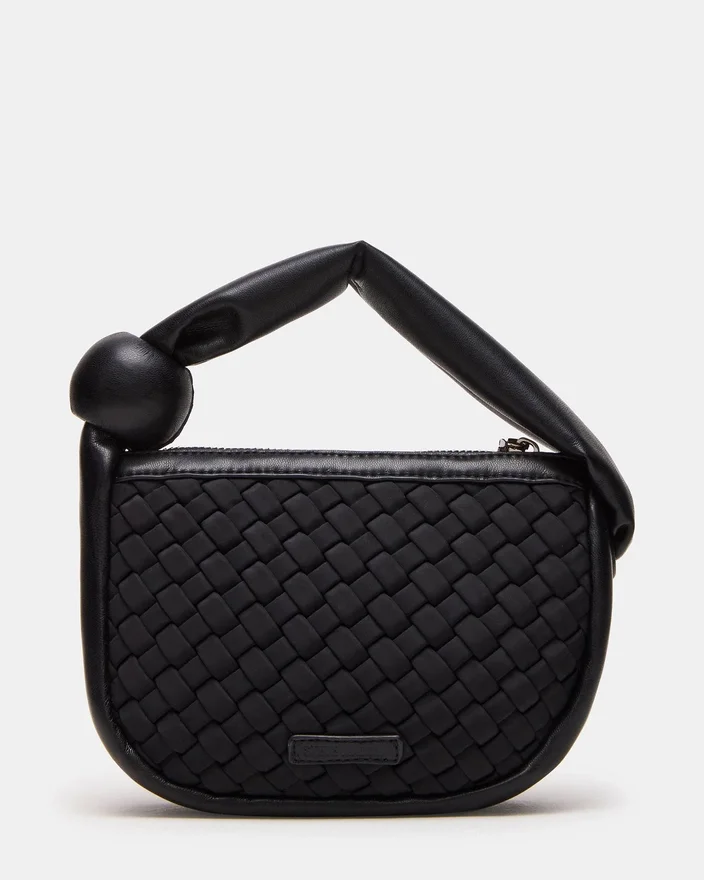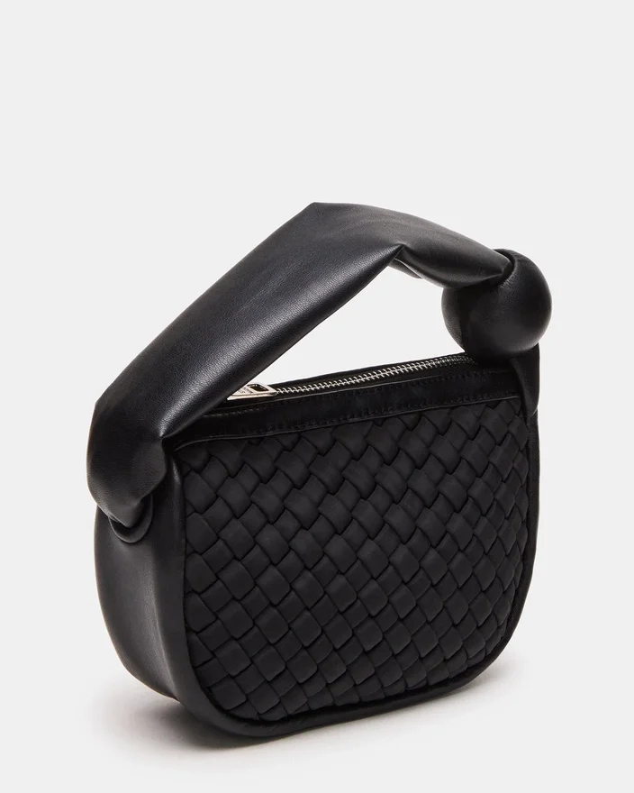 Introducing the Natasha Bag, a Mini Bag with a Chic Puffed Handle. Made with Durable Woven Neoprene and Featuring Covered Hardware, This Bag is Both Stylish and Functional. The Zipper Closure Keeps Your Belongings Secure on the Go. Elevate Your Outfit with This Versatile Accessory.