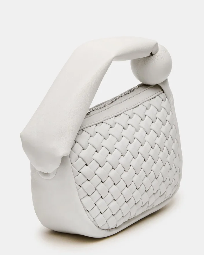 Introducing the Natasha Bag, a Mini Bag with a Chic Puffed Handle. Made with Durable Woven Neoprene and Featuring Covered Hardware, This Bag is Both Stylish and Functional. The Zipper Closure Keeps Your Belongings Secure on the Go. Elevate Your Outfit with This Versatile Accessory.