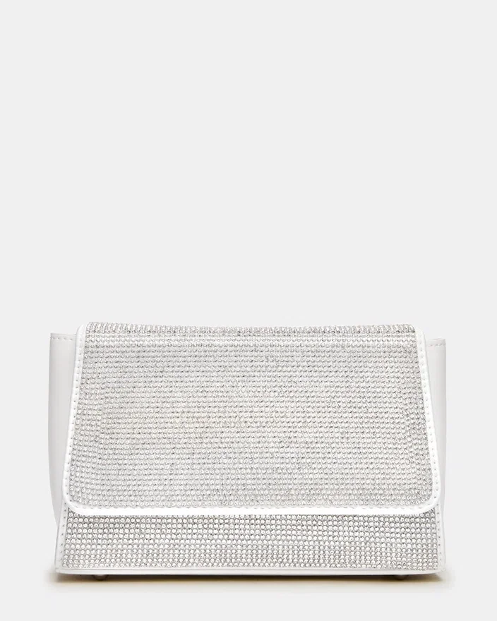The Evelina Bag Rhinestones Combines Bold Geometry with Practical Elegance. Adorned with Sparkling Rhinestone Embellishments, This Angular Mini Clutch Delivers Contemporary Edge Without Sacrificing Wearability. The Removable Chain Crossbody Strap Offers Styling Versatility, While Metal Feet Protect the Base During Everyday Use. Inside, Dedicated Card Slots Keep Essentials Organized, Secured by a Magnetic Snap Closure. A Statement Piece Designed for Those Who Refuse to Compromise Between Fashion-Forward Design and Functionality.