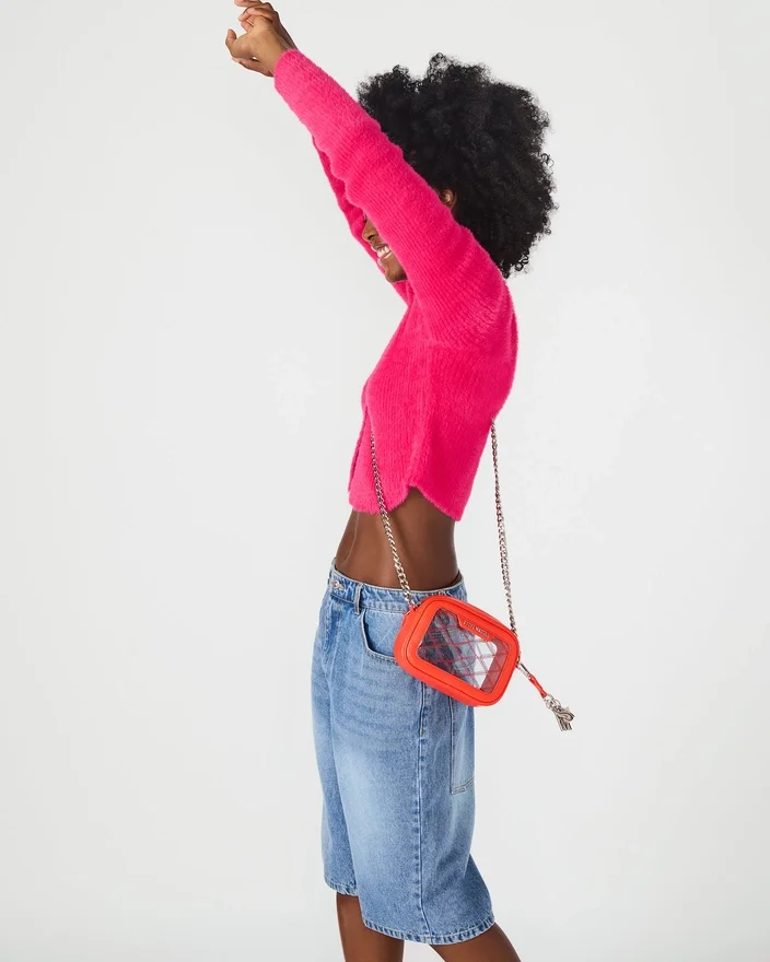 The Jelly Bag is a Fashionable and Functional Clear Camera Crossbody Bag That Will Keep Your Essentials Secure with Its Top Zip Closure. Its Textured Shimmery Design and Matte Hardware Add a Touch of Sophistication, While the Quilt Stitching Detail Adds a Stylish and Trendy Element. This Bag is the Perfect Choice for a Gameday or Concert, as It Meets All Stadium Requirements and Comes with an Adjustable Crossbody Strap for Added Versatility.