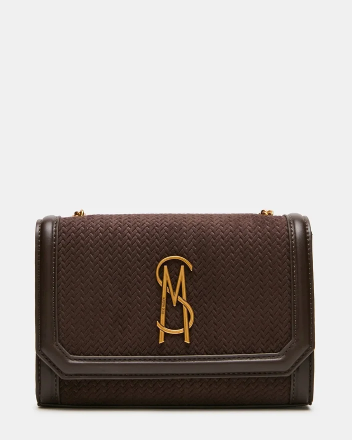 Expertly Crafted for Those On-The-Go, the Larisa Woven Bag Chocolate in is a Small Crossbody Logo Bag Designed to Fit Your Essentials. Featuring a Convenient Chain Crossbody Strap and a Front Flap with a Magnetic Snap Closure, Keeping Your Belongings Secure Has Never Been Easier. Perfect for Hands-Free Convenience.
