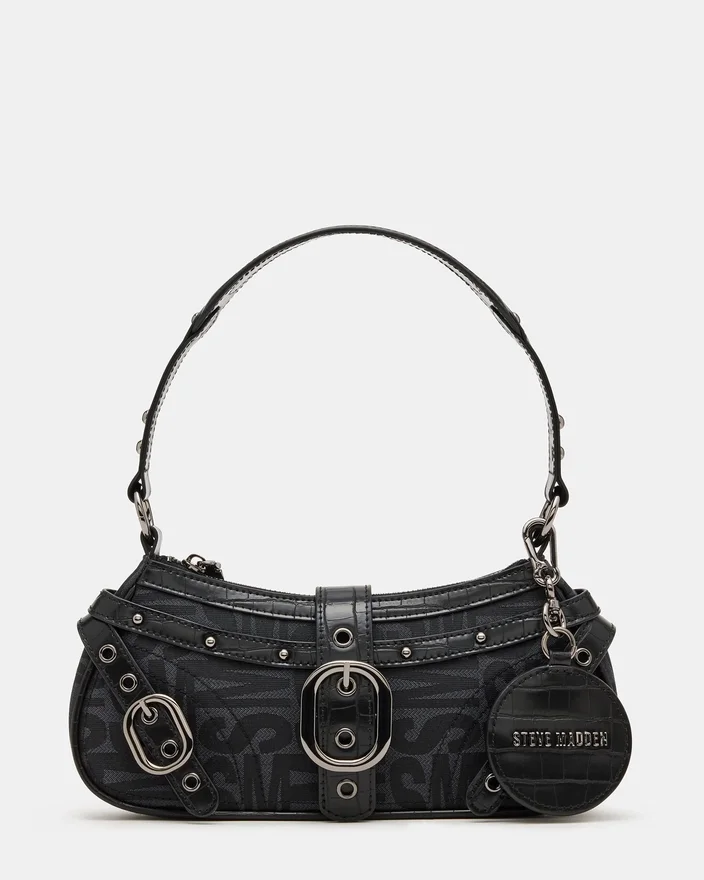 The Motorr Bag Combines Y2K-Inspired Logo Print with Vintage Buckle Detailing for a Distinctive Look. Designed with Both Style and Function in Mind, It Features a Magnetic Snap and Top-Zipper Closure to Secure Your Essentials. Its Spacious Interior Comfortably Fits a Large Phone and Includes Front and Back Wall Pockets for Organized Storage. An Attachable Mirror Bag Charm Adds a Practical, Stylish Touch, Making This Shoulder Bag a Versatile Accessory for Everyday Use.