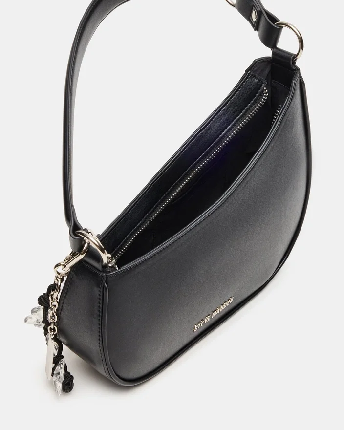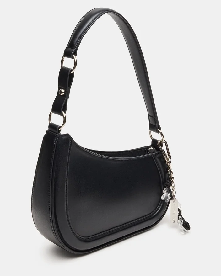 This Musee Bag Black is an Asymmetrical Shoulder Bag That Features a Top-Zipper Closure, Making It Both Secure and Stylish. The Flower Bead Bag Charm Adds a Touch of Whimsy. With Its Unique Design and Functional Features, This Bag is an Ideal Accessory for Any Fashion-Forward Individual.