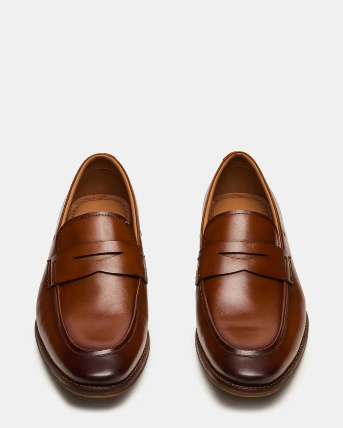 The Lightning Tan Leather Slip-On Loafer Combines Understated Elegance with Practical Design, Featuring a Rounded Toe That Flatters the Foot While Maintaining a Polished Appearance. This Versatile Style Transitions Seamlessly from Professional Settings to Casual Occasions, Making It a Perfect Addition to Any Wardrobe.