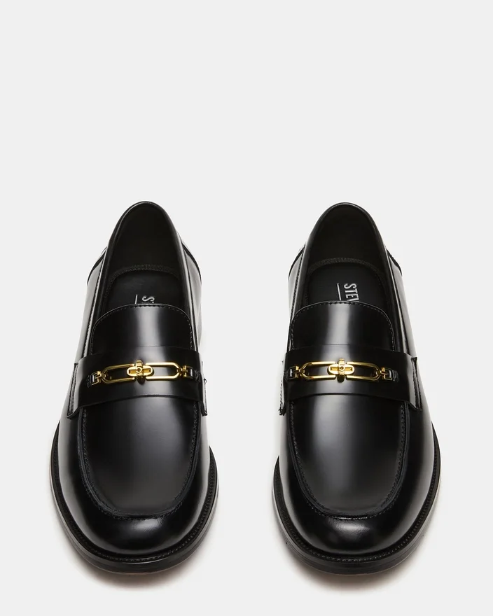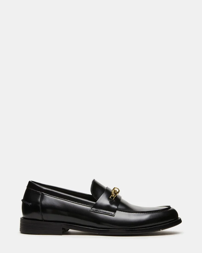 The Nevinn Black is a Sophisticated Slip-On Dress Loafer That Elevates Your Professional Wardrobe with Refined Styling. Designed for Effortless Elegance, This Loafer Features a Streamlined Silhouette Perfect for Boardroom Meetings or Upscale Occasions. The Standout Hardware Accent Adds a Contemporary Edge to the Classic Loafer Design, Distinguishing It from Conventional Dress Shoes.
