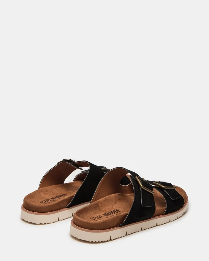 Crafted from High-Quality Suede, the Corban Slide Sandals Offer Both Comfort and Style. The Slip-On Construction and Double Buckle Closure Ensure a Secure Fit, Making Them Perfect for Everyday Wear. Elevate Your Shoe Game with These Versatile and Stylish Sandals.
