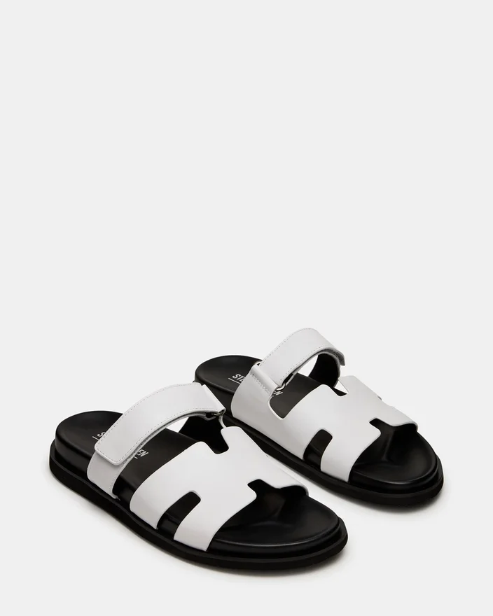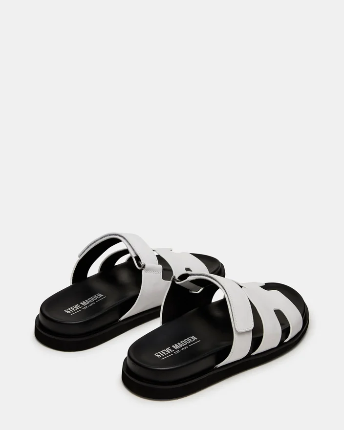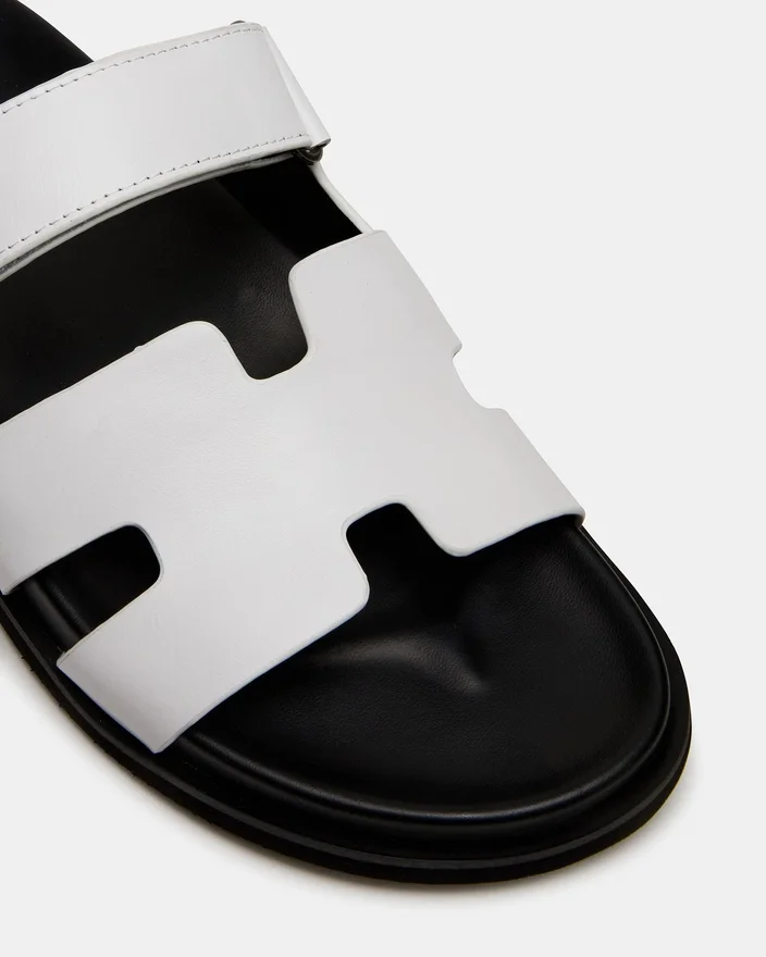 Discover the Versatile and Stylish Maiven White Sandals. Perfectly Crafted for Your Comfort, These Slides Offer a Carefree and Effortless Summer Look. Embrace the Simplicity of a Slip-On Sandal.