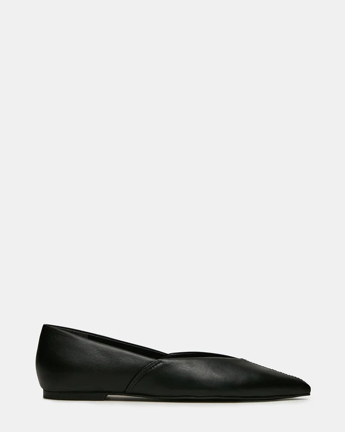 Elevate Your Everyday Elegance with the Tovi Black Leather Pointed-Toe Ballet Flat. The Elongated Silhouette Creates a Flattering Line While the Classic Ballet Profile Offers Timeless Versatility. Perfect for Transitioning Seamlessly from Office to Evening, This Flat Delivers Understated Sophistication Without Compromise. A True Investment in Polished, Enduring Style.