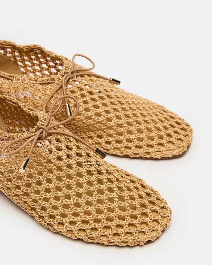 Graceful and Versatile, the Vespa Natural Ballet Flat Features a Woven Upper with an Adjustable Tie Closure for a Customized Fit. The Minimalist Design Transitions Seamlessly from Studio to Street, Offering Comfort and Elegance in Every Step. Crafted for Individuals Who Value Timeless Design and Sophistication.