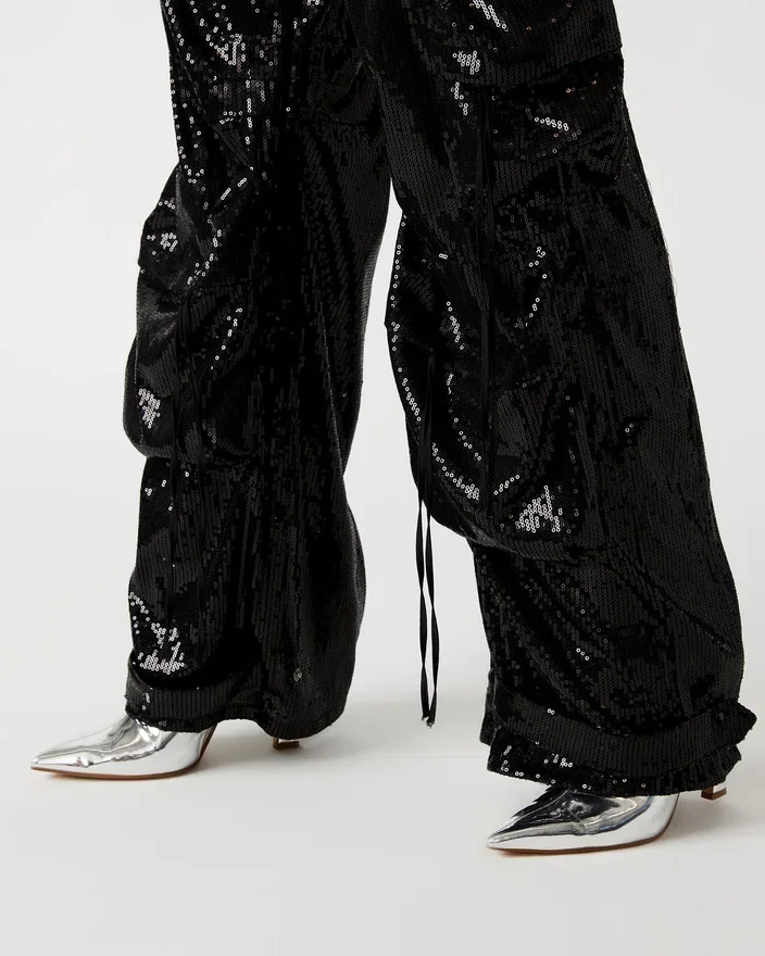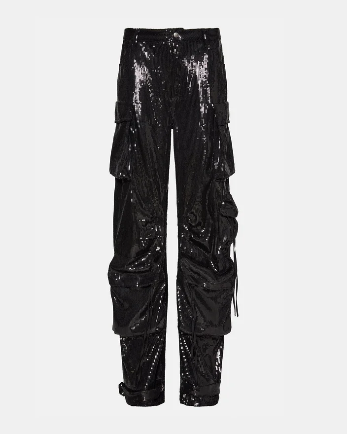 • Mid Rise Sequin Cargo Pants