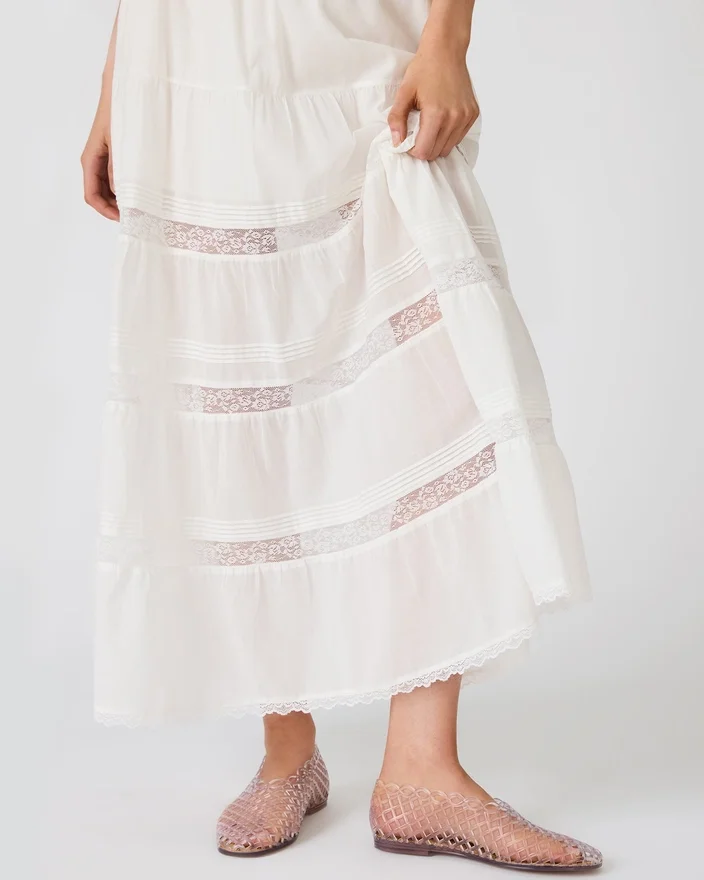 Elevate Your Wardrobe with the Elisse Skirt Antique, a Sophisticated Maxi Silhouette That Combines Timeless Elegance with Everyday Comfort. Delicate Lace Detailing Adorns This Flowing Piece, Adding an Intricate, Feminine Touch. The Elastic Waistband Ensures a Comfortable, Secure Fit That Moves with You, While the Full-Length Cut Offers Graceful Coverage and a Flattering Drape. Perfect for Creating Effortless, Polished Looks That Feel Both Refined and Wearable.