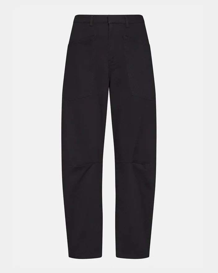 Introducing the Haniel Pant – a Professional and Stylish Barrel Leg Pant with Utility Pockets Made from Stretch Cotton Twill. Enjoy the Comfort and Versatility of These Pants While Looking Polished and Organized. Perfect for Work or Casual Wear.