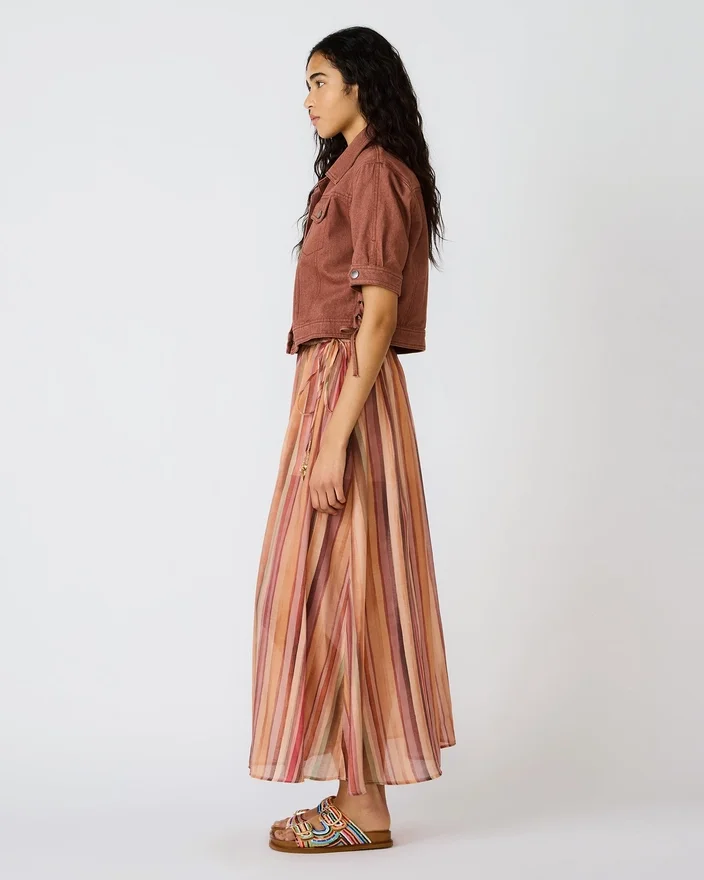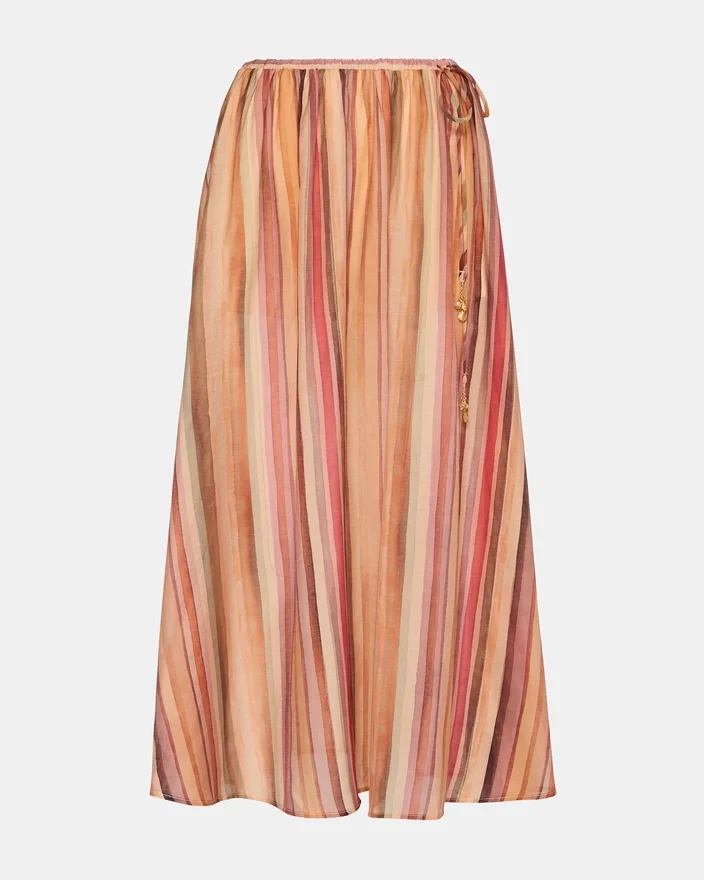 The Shilloh Skirt Stripe Multi Combines Effortless Elegance with Contemporary Flair. This Maxi Skirt Features a Graceful, Flowing Silhouette Enhanced by Vibrant Multi-Colored Stripes That Add Visual Interest and Movement. The Relaxed Drape Creates a Flattering, Comfortable Fit Perfect for Both Casual Outings and Elevated Occasions. Versatile Enough to Pair with Simple Basics or Statement Tops, This Piece Transitions Seamlessly from Day to Evening Wear. An Essential Addition to Any Wardrobe Seeking Sophisticated Style with Modern Appeal.