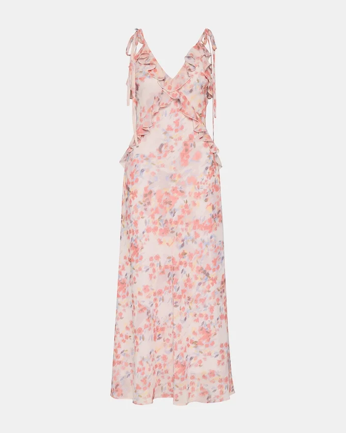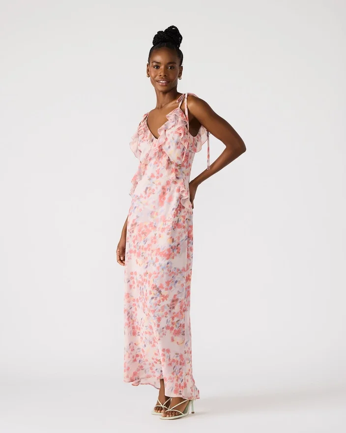 Be the Center of Attention in the Stunning Adalina Dress. This Dress Features a V-Neckline and Ruffle Detail That Will Make You Stand out on Any Occasion. With Its Sleeveless Design, This Maxi Dress is the Perfect Addition to Your Wardrobe.