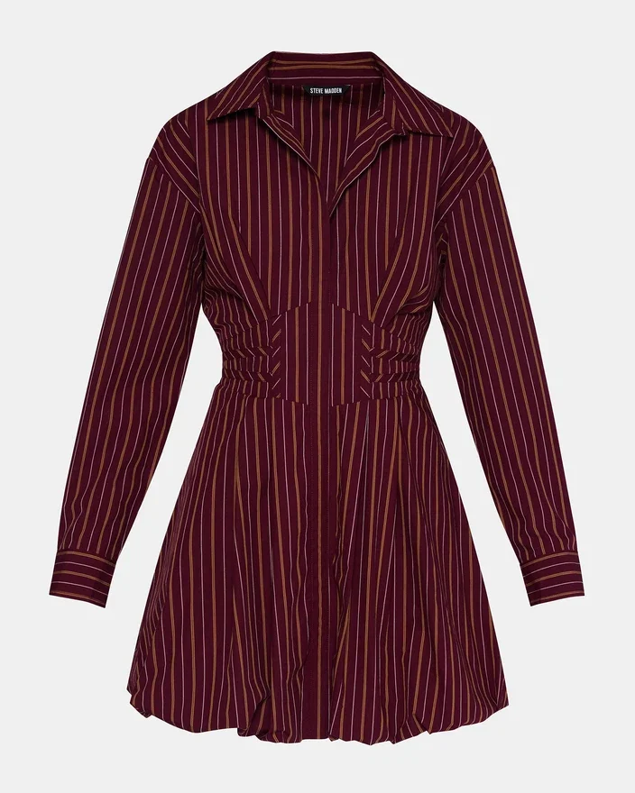 The Arielle Dress Offers a Refined Take on the Classic Long-Sleeved Button-Up Dress. Its Tailored Fit and Rich Wine Hue Create a Sophisticated Silhouette Ideal for Professional Settings or Elegant Occasions. The Button-Up Front Provides Versatile Styling Options, While the Long Sleeves Add a Polished, Timeless Appeal. This Dress Combines Expert Craftsmanship with a Flattering Design to Ensure Both Comfort and Style Throughout Your Day.