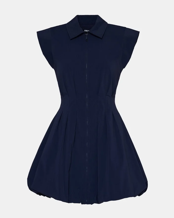 The Dyanne Dress Marine is a Stylish Mini Dress Featuring a Zip Front and Bubble Hem in Tech Nylon. With a Collared Neckline, This Dress is Perfect for Any Occasion and Provides a Modern, Chic Look. Made with High-Quality Materials, It Offers Both Comfort and Durability. Get Ready to Turn Heads and Stand out in This Must-Have Dress.