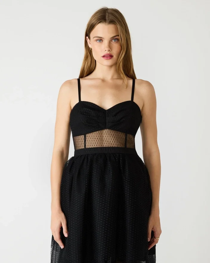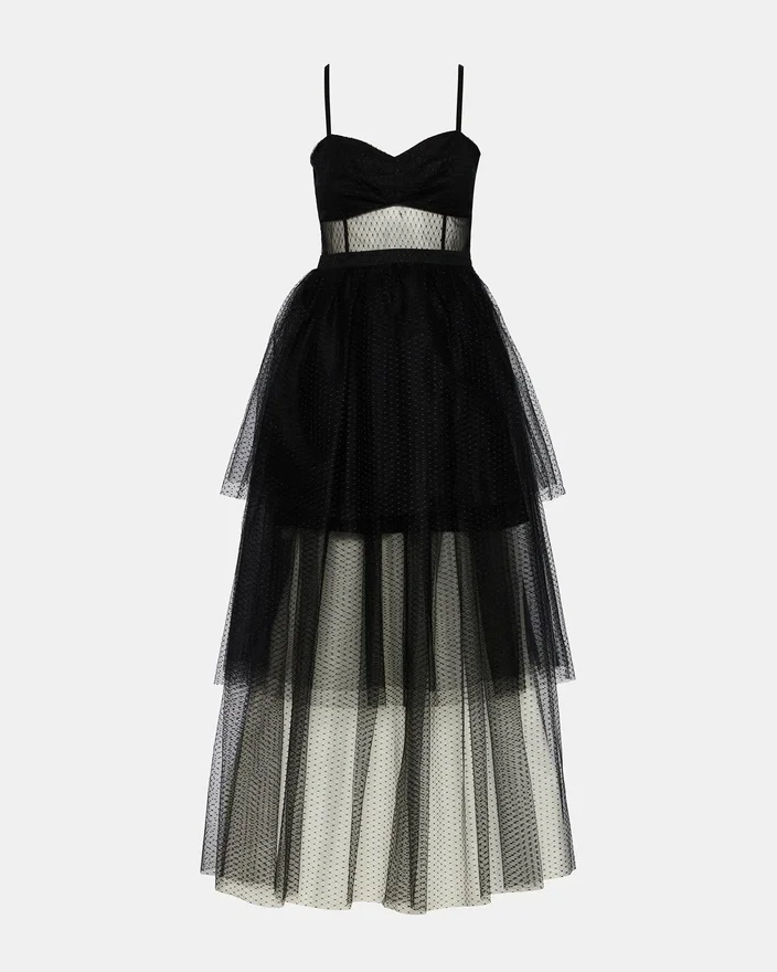 Make an Entrance in This Sophisticated Emily Tulle Dress Black, Designed with an Elegant Mesh Center Panel That Adds Visual Interest and Dimension. The Adjustable Straps Provide a Customizable Fit, Allowing You to Find Your Perfect Silhouette for the Evening. Crafted from Premium Tulle, This Gown Delivers the Volume and Movement Expected of a Show-Stopping Formal Piece. Ideal for Prom, Galas, or Any Black-Tie Occasion Where Timeless Elegance is Paramount.