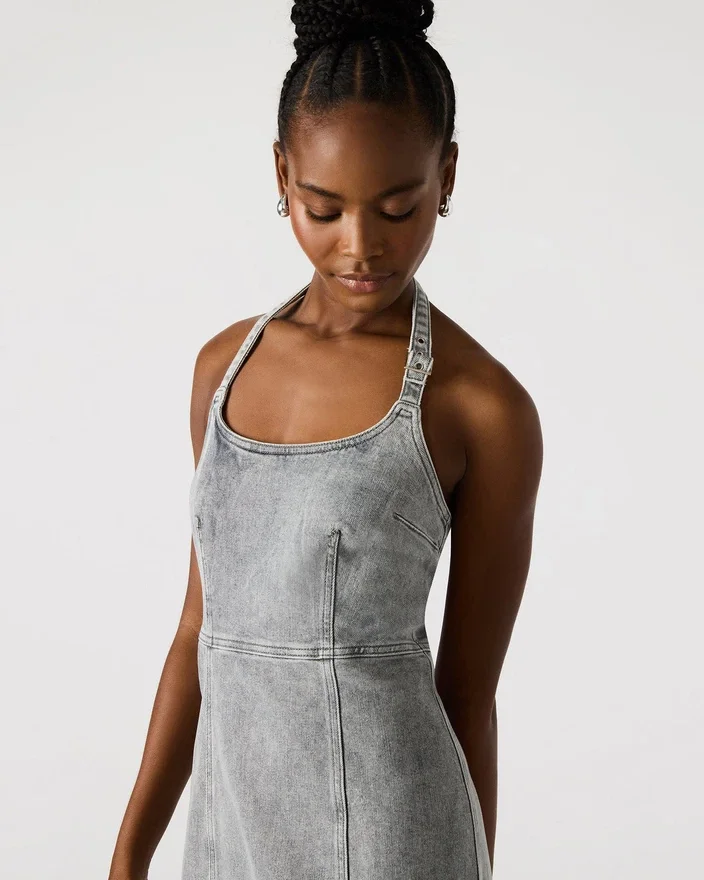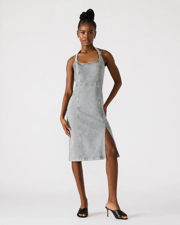 Expertly Crafted, the Gia Denim Dress is a Must-Have for Any Wardrobe. Its Side Slit Adds a Touch of Sophistication, While the Back Zipper Closure Ensures a Perfect Fit. Made from High-Quality Materials, This Dress is Both Stylish and Durable. Perfect for Any Occasion.