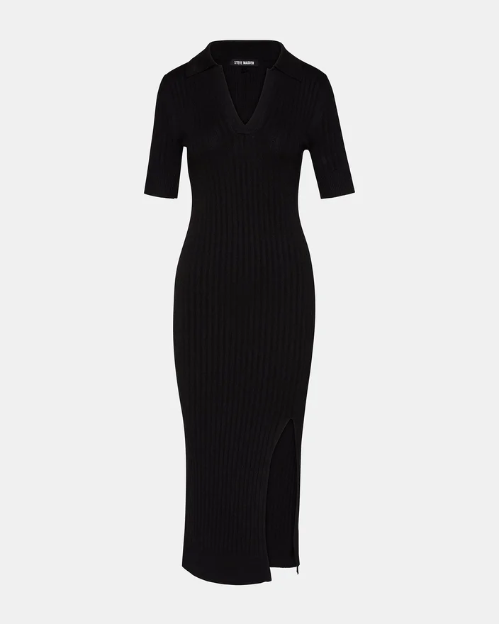 Expertly Crafted for a Sleek and Modern Look, the Lindy Dress Offers a Fitted Body with a Short-Sleeved Design and Collar. The Textured Stitching Adds a Touch of Sophistication, While the Front Slit Adds a Subtle Edge. Perfect for Any Occasion, This Dress Will Elevate Your Style Game.