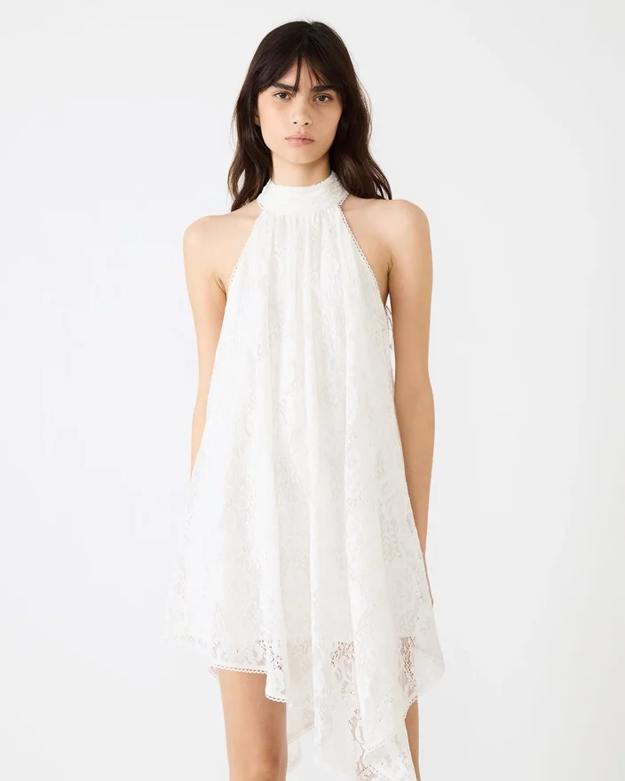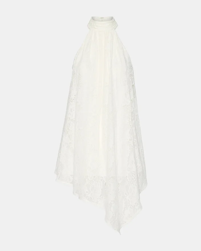 The Sander Dress Cream is an Asymmetrical Mini Dress That Combines Elegance with Modern Edge. Featuring a High Neckline and Striking All-Over Lace Detail, This Piece Offers Sophisticated Coverage with a Contemporary Twist. The Convenient Zipper Back Closure Ensures an Easy Fit, While the Asymmetrical Cut Creates Dynamic Movement and Visual Interest. Perfect for Elevated Casual Occasions or Nights out, This Dress Balances Delicate Lace Textures with Bold Silhouette Choices for a Truly Distinctive Look.