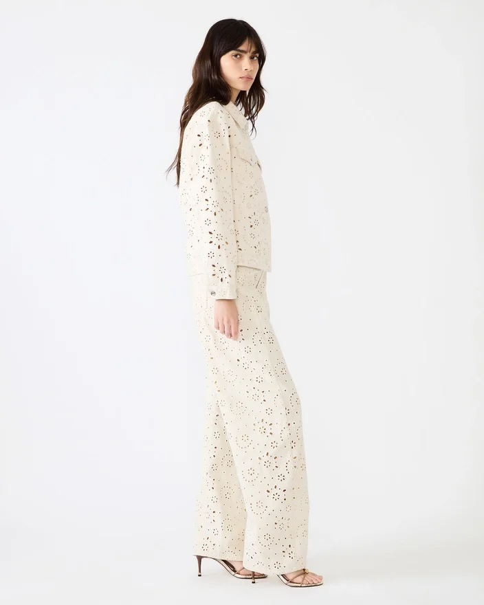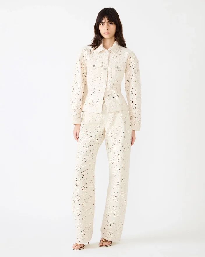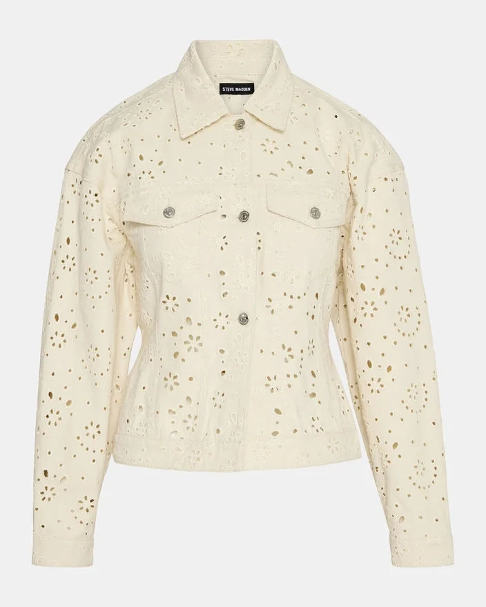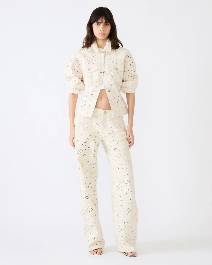 The Henrietta Jacket Sea Mist Combines Timeless Denim Craftsmanship with Contemporary Design Details. This Long-Sleeved Button-Up Style Features a Refined Eyelet Design Throughout, Adding Visual Interest and Texture to the Classic Silhouette. The Jacket Delivers a Soft, Versatile Tone That Pairs Effortlessly with Your Everyday Wardrobe. Constructed from Quality Denim, This Jacket Offers Durability and Structure While Maintaining a Comfortable Fit. Perfect for Layering Across Seasons, the Henrietta Transitions Seamlessly from Casual to Polished Looks, Making It an Essential Piece for Any Style-Conscious Wardrobe.