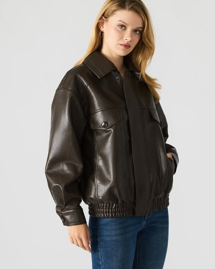 The Henson Jacket Coco is Crafted from Sleek Faux Leather, Featuring a Long-Sleeved Design That Combines Style with Practicality. Its Sturdy Zipper Closure Ensures Secure Wear, While the Classic Collared Neckline Offers a Structured, Polished Silhouette. This Jacket Provides a Versatile Layering Option That Elevates Any Outfit with an Expert Touch of Contemporary Edge.