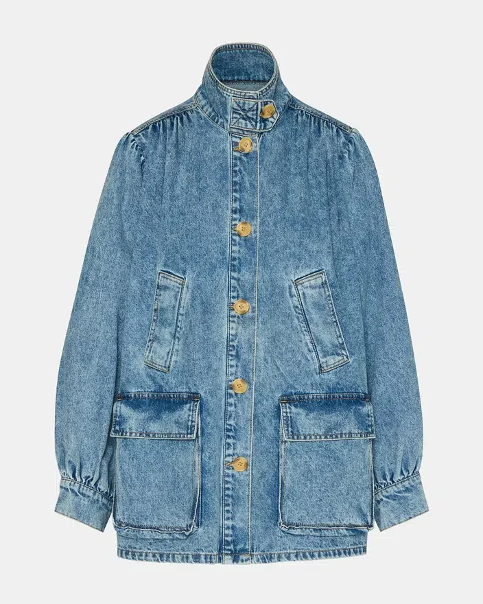 The Marceline Denim Jacket Forever Blue Offers a Timeless Silhouette with a Modern Fit. Crafted from Durable Denim, This Long-Sleeve Button-Up Jacket Features Classic Detailing That Enhances Its Versatile Style. Its Structured Design Provides Layering Options for Transitional Weather, Delivering Both Comfort and a Polished Look Ideal for Elevated Casual Wear.