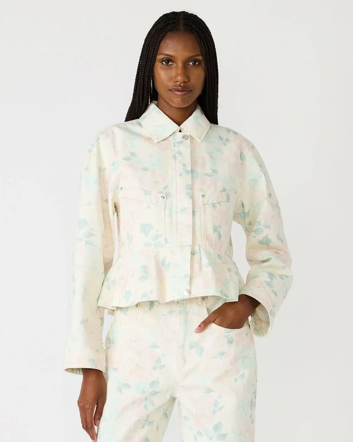 The Sloan Floral Jacket Peach Beige Jacket is a Long-Sleeved Jacket Designed to Complement Its Matching Set, Offering a Cohesive and Stylish Look. Crafted for Those Who Appreciate Coordinated Fashion, This Jacket Combines Functional Coverage with a Distinctive Pattern, Making It Ideal for Layering or as a Statement Piece in Your Wardrobe. Its Expert Design Ensures Both Comfort and Versatility for Various Occasions.