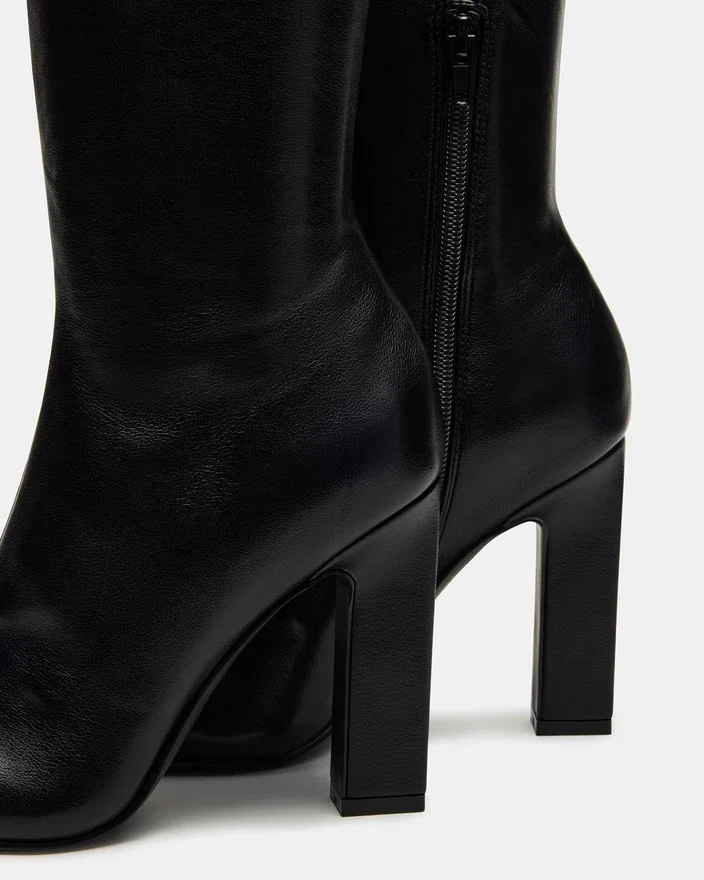 Elevate Your Style with Our Aria Black Wide Calf Knee-High Heeled Boot. Crafted with a Sleek Design, These Boots Will Add a Touch of Sophistication to Any Outfit. You Can Confidently Step out in Style with a Comfortable Heel Height and Secure Fit. Perfect for Any Fashion-Forward Individual.