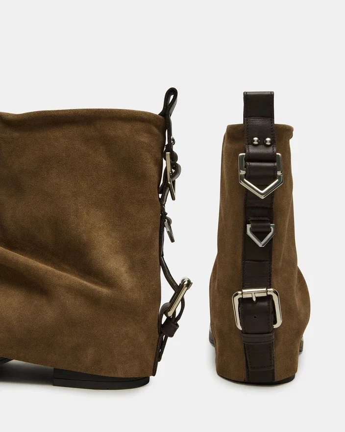 The Benji Ankle Boot Features a Sophisticated Cuffed Fold-Over Design Combined with a Sleek Moto-Inspired Silhouette. Its Unique Buckle Detail on the Back Adds a Distinctive Edge, Blending Style with Subtle Functionality. Crafted for Both Comfort and Statement-Making Appeal, This Bootie Elevates Any Outfit with Expert Craftsmanship and Contemporary Flair.