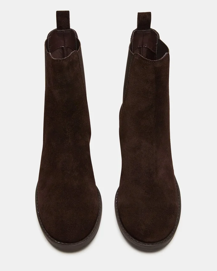 The Kaplan Brown Suede Chelsea Ankle Bootie Combines Classic Design with Premium Craftsmanship. Featuring Elastic Side Panels, It Offers a Sleek Silhouette and Easy Slip-On Wear. Its Low Heel and Cushioned Insole Provide All-Day Comfort, Making It a Versatile Choice for Both Professional and Casual Settings. Durable Construction Ensures Lasting Wear, While the Timeless Style Complements a Variety of Outfits with Understated Sophistication.