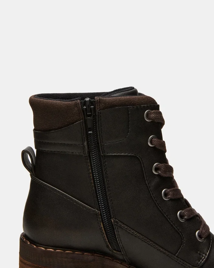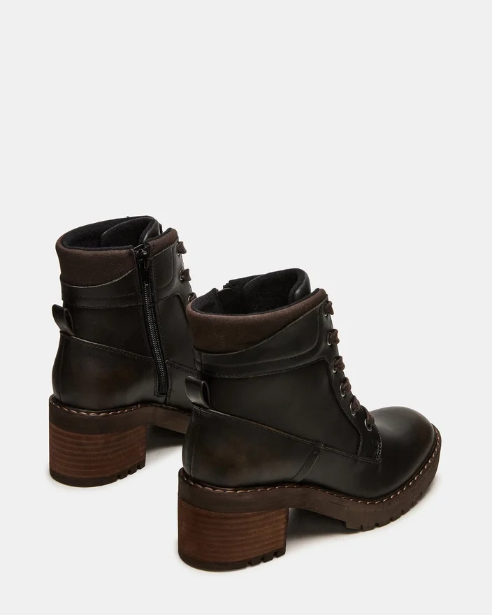 Step into Effortless Style with the Tuff Dark Brown, a Lace-Up Ankle Bootie Designed for Modern Confidence. Featuring a Sturdy Block Heel That Delivers All-Day Comfort and Stability, This Versatile Bootie Transitions Seamlessly from Casual Weekends to Polished Weekday Looks. The Classic Lace-Up Closure Ensures a Secure, Customizable Fit, While the Sleek Silhouette Flatters Any Outfit.