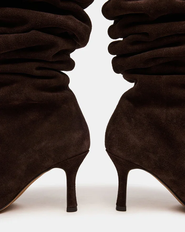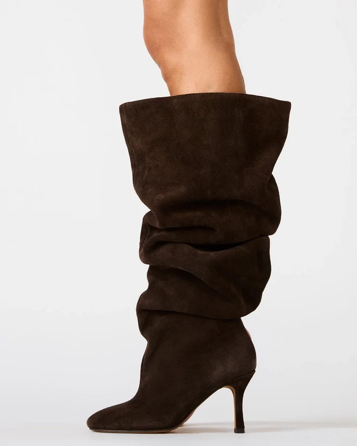 Step into Refined Elegance with the Allison Brown Suede Over-The-Knee Heeled Boot. Crafted for a Sleek Silhouette, Its Material Extends Gracefully Above the Knee, Offering Both Style and Coverage. The Slender Heel Adds Height While Maintaining Comfort, Perfect for Elevating Any Outfit from Day to Night with Confidence and Sophistication.