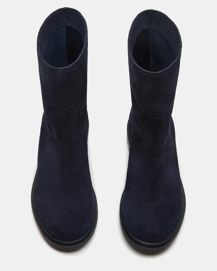 Crafted from Premium Materials, the Bates Navy Suede Boot Features a Rounded Toe for Timeless Style and Comfort. Its Sleek Design Offers Durability and Versatility, Making It an Essential Addition to Any Wardrobe. Ideal for Both Casual and Formal Wear, This Boot Combines Expert Craftsmanship with Enduring Appeal.