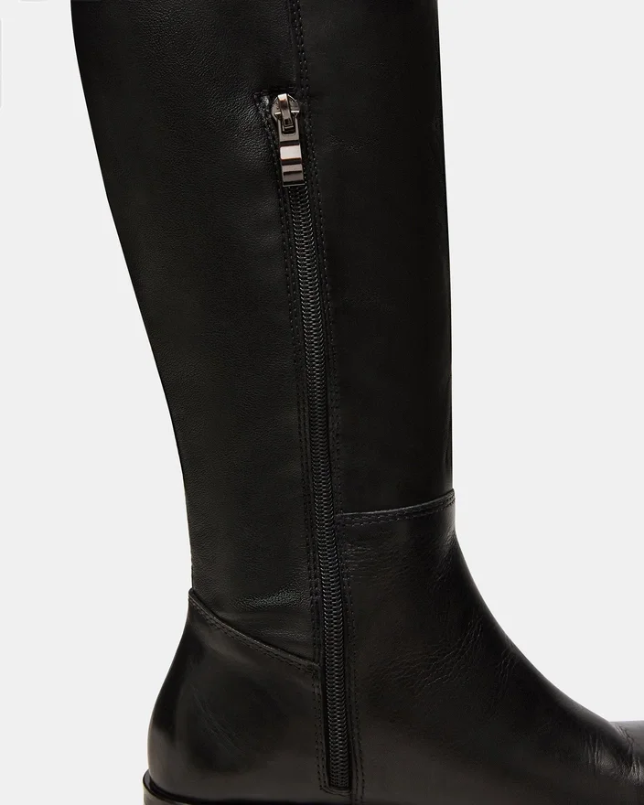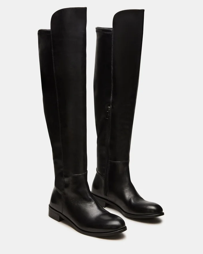 The Lancaster Black Leather Boot Delivers Sophisticated Style with Its Sleek Construction and Rounded Toe Silhouette That Flatters the Foot. This Over-The-Knee Design Creates an Elongated Leg Line While the Fit Ensures All-Day Comfort and Stability. A Versatile Essential That Transitions Seamlessly from Daytime Settings to Evening Occasions.