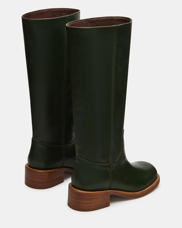 Effortlessly Elevate Your Style with the Riggs Dark Green Leather Boot. With Its Square-Toe and Sleek Design, This Just-Under-The-Knee Boot is a Must-Have for Any Fashion-Conscious Individual. This Timeless Boot Provides Both Comfort and Sophistication, Making It the Perfect Addition to Any Outfit.
