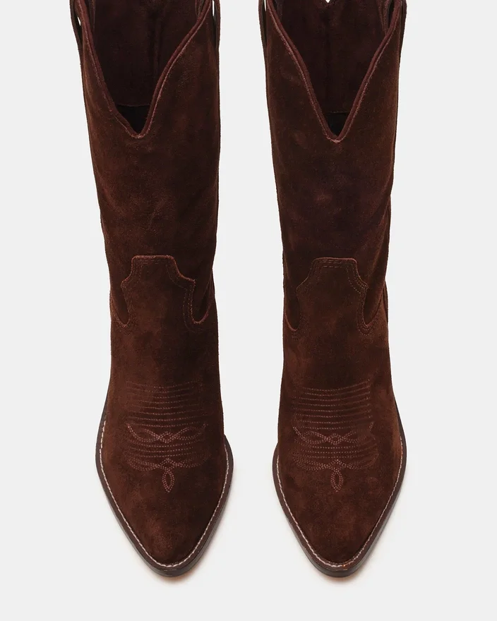The Sally Brown Suede is a Pointed-Toe Western Boot Engineered for All-Day Comfort and Versatility. The Sturdy Block Heel Provides Stable Support Whether You’re Navigating City Streets or Embracing a Bold Fashion Statement. Crafted in Premium Materials, This Boot Delivers Classic Western Style with Refined Construction. Perfect for Elevating Casual Outfits or Grounding More Polished Looks with an Edge.