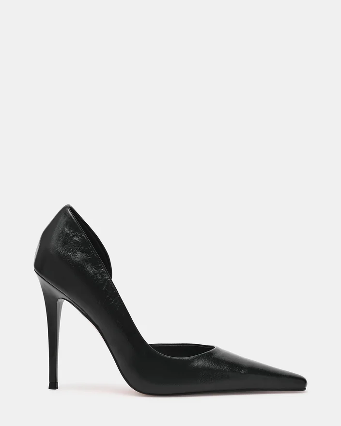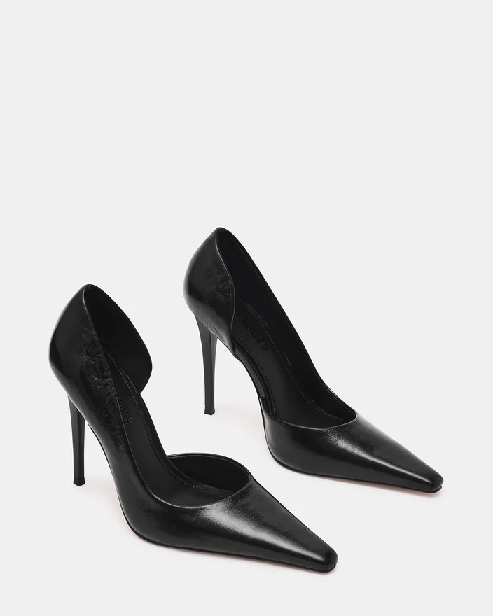 Elevate Your Style with These Elegant Black Leather Pumps, Featuring a Pointed Toe and a Sleek Stiletto Heel That Adds Sophisticated Height. The Ruched Detailing Enhances the Silhouette, Creating a Refined Look Perfect for Formal Events or Professional Settings. Designed for Both Allure and Confidence, This Shoe Brings Expert Craftsmanship and Timeless Design to Your Wardrobe.