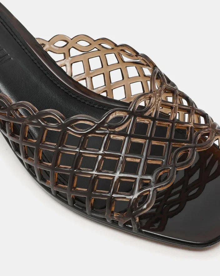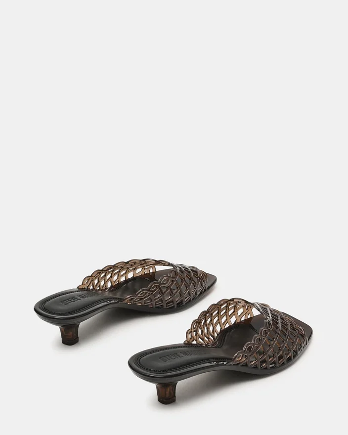 The Ginger Smoke Features a Woven Lattice Strap Design, Offering Refined Sophistication Through Its Silhouette and Practical Kitten Heel. The Structured Toe Shape Offers a Modern Aesthetic While Maintaining Comfort for All-Day Wear. The Delicate Heel Height Provides Subtle Elevation Without Compromising Walkability, Making It an Ideal Choice for Both Professional and Casual Settings. A Versatile Essential That Transitions Seamlessly Across Your Wardrobe.