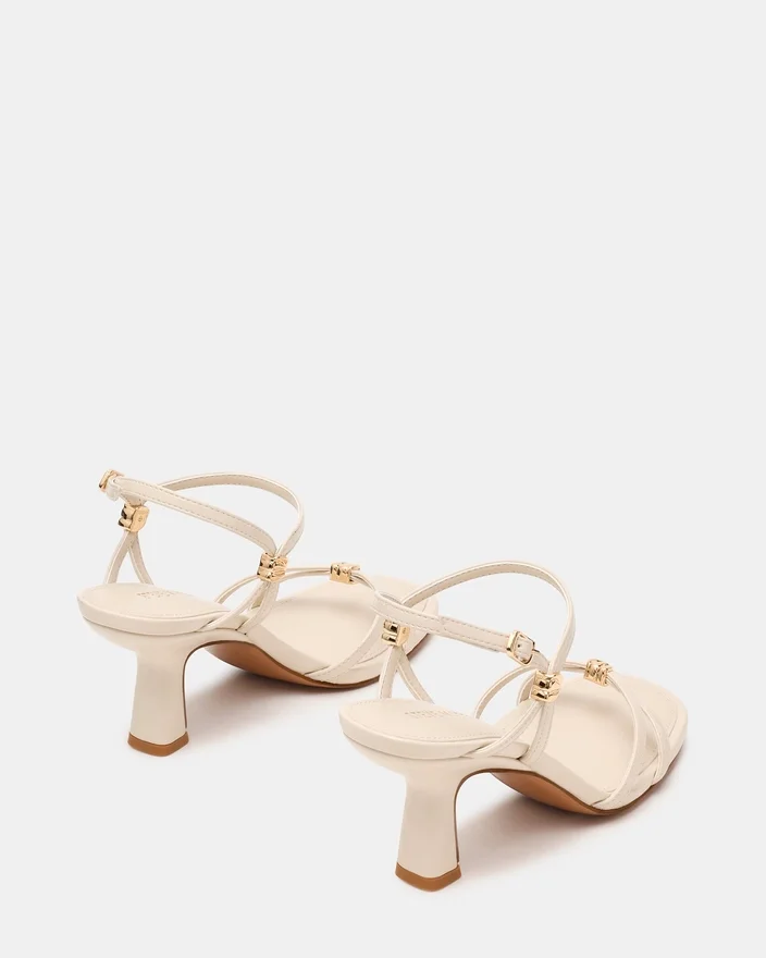 The Posy Bone Elevates Any Wardrobe with Its Sophisticated Silhouette. Delicate Gold Detailing Adds a Touch of Luxury to the Sleek Heel, While the Strappy Design Provides Secure Support and Visual Interest. The Square-Toe Shape Offers a Modern, Flattering Profile That Works Seamlessly from Day to Evening.