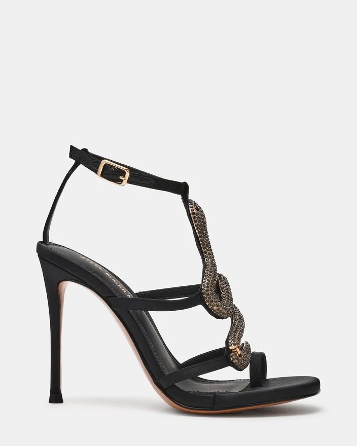 Make a Statement with the Python Black Stiletto, a Sophisticated Heel That Commands Attention. This Strappy Design Features a Striking Rhinestone Snake-Textured Detail That Elevates the Classic Silhouette with Modern Edge. The Sleek Finish Pairs Effortlessly with Any Wardrobe, While the Stiletto Heel Delivers Timeless Elegance and Confidence. Perfect for Those Who Appreciate Bold, Distinctive Footwear.