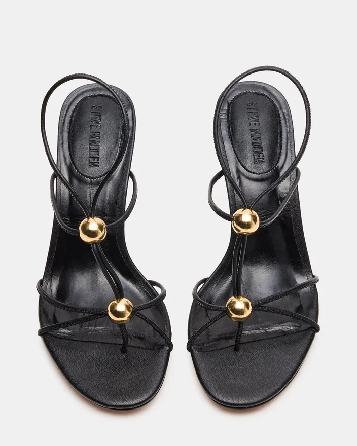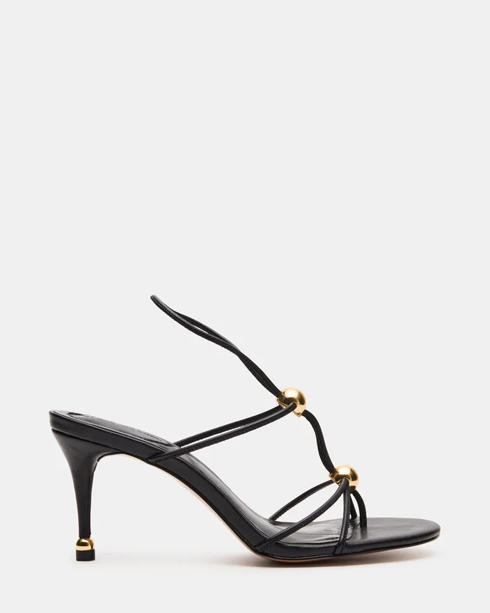 Introducing the Ramos, the Perfect Combination of Elegance and Edge. Featuring a Strappy Stiletto Heel Adorned with Gold Hardware Accents, These Shoes Will Elevate Any Look. Step out in Style and Confidence with These Stunning Heels.