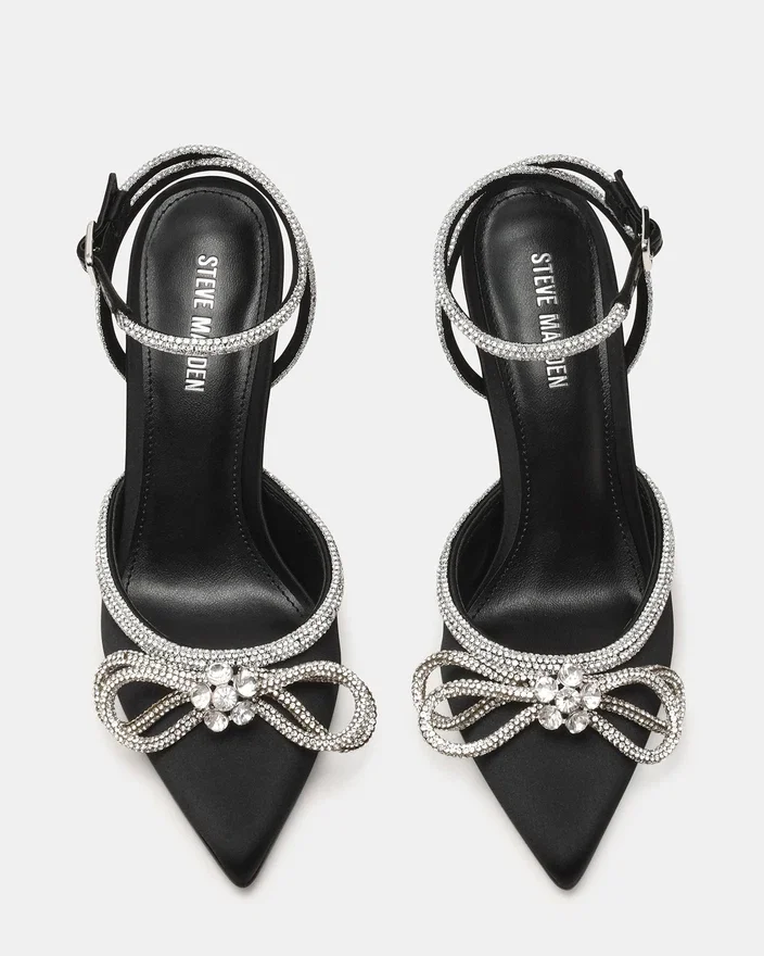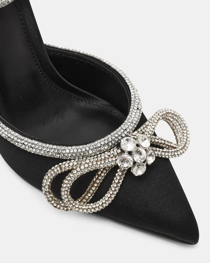 You’ll Be the Bell of the Ball in Viable, the Dress Heel You’ll Wear for Years to Come. Set Atop a Slender Stiletto Heel, This Pointed-Toe Pair Features a Slim Embellished Ankle Strap and Bow Design.