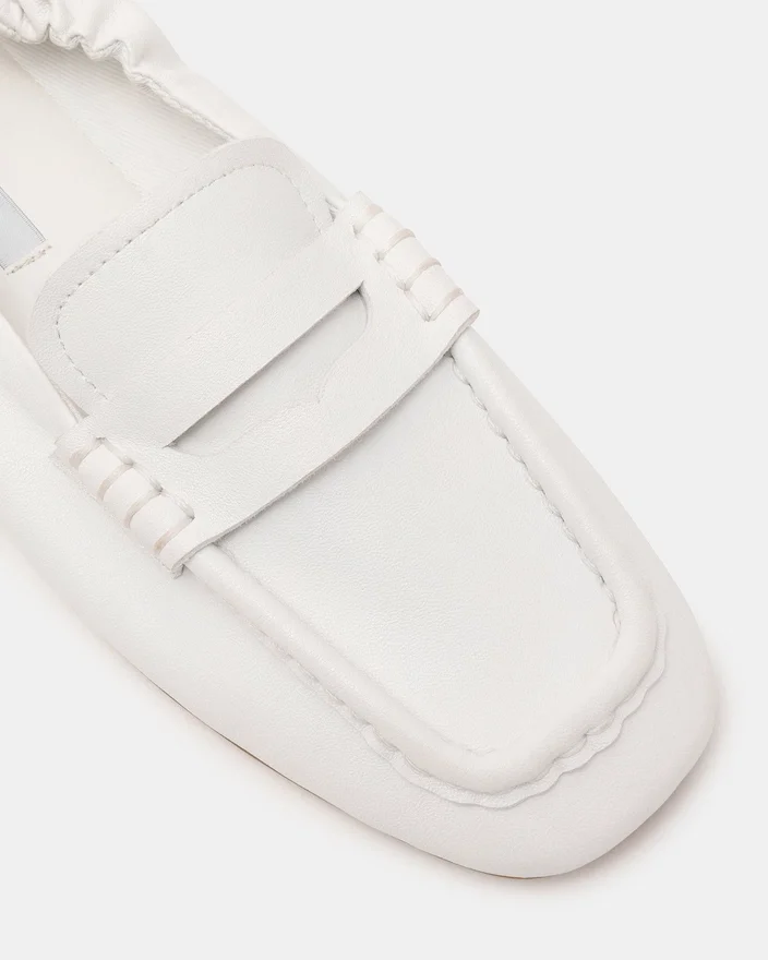 The Eurry White Leather Square-Toe Loafer Delivers Timeless Sophistication with a Modern Silhouette. Crafted with Meticulous Attention to Detail, This Slip-On Style Features a Structured Square Toe That Commands Attention While Maintaining Versatile Appeal. The Refined Construction Ensures All-Day Comfort, Making It Equally at Home in Professional Settings or Elevated Casual Wear.