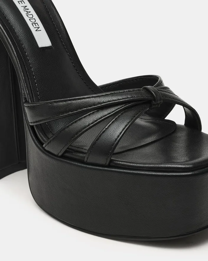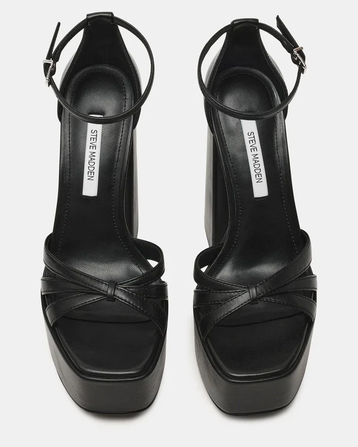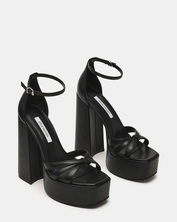 The Retro Black Leather Showcases a Classic Platform Design Paired with a Block Heel for Enhanced Balance and Comfort. Its Open Toe Offers Breathability and Style, While the Adjustable Ankle Strap Ensures a Secure Fit. This Combination Delivers Both Elevated Height and Lasting Support, Making It the Perfect Heel for Those Seeking a Refined Look.