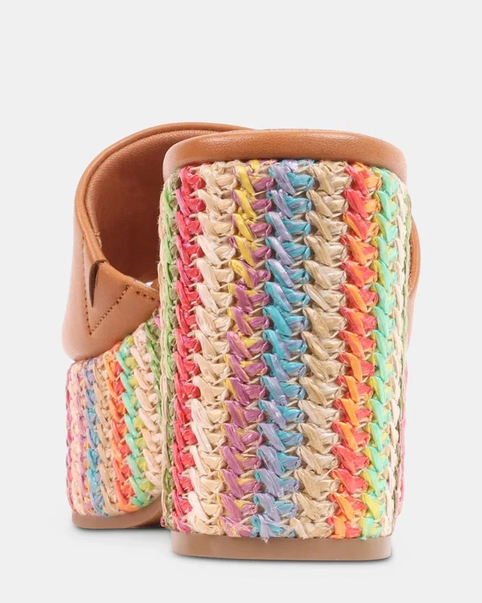 The Trippy Multi Raffia Platform Sandal Combines Elevated Style with Comfort. Featuring a Raffia Upper and a Sturdy Heel, It Offers Reliable Support While Enhancing Your Silhouette. The Mule Design Allows for Effortless Slip-On Wear, Making It an Ideal Choice for Warm-Weather Occasions Where Both Ease and Elegance Are Essential.