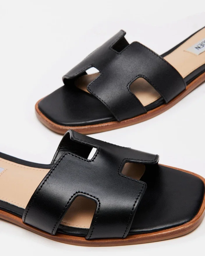 Geometric Cutouts on the Wide Single Strap of the Hadyn Slide Give This Flat Sandal Design a Fresh Feel.